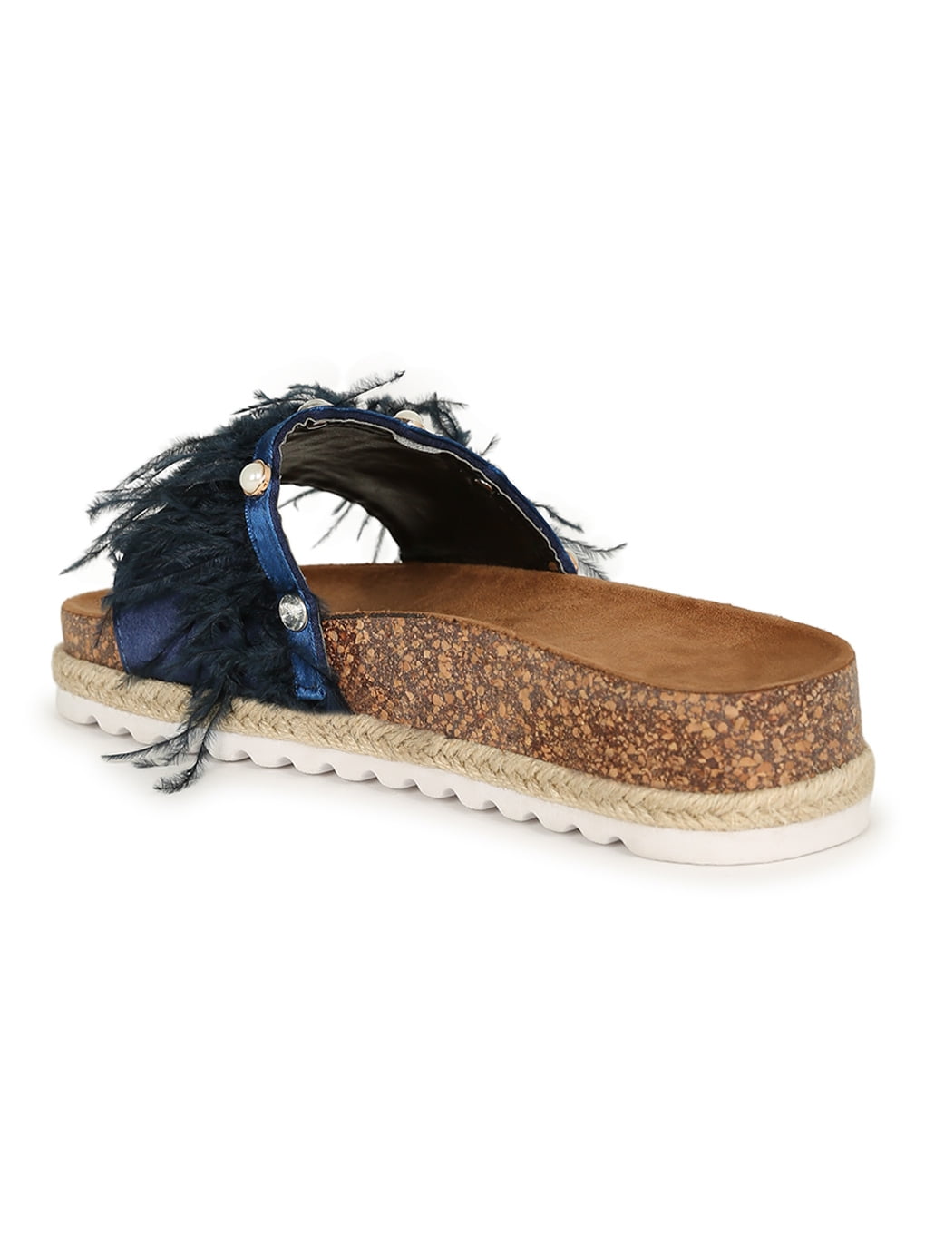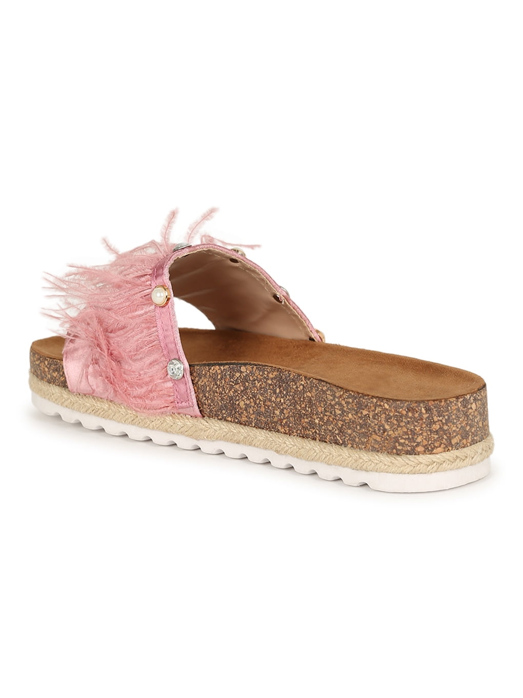 Feathered Pearl Rhinestone Cork Espadrille Slide Sandal 20105 Walmart Com